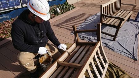 岐阜市内 某ビルでデッキ塗装工事をさせて頂きました。