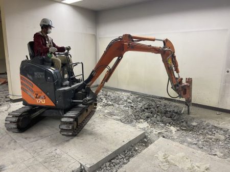 コンクリートガラを取り除き、排水の配管をしていきます。