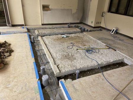 土間配管が終わり、土間コンクリートの復旧準備にかかります。