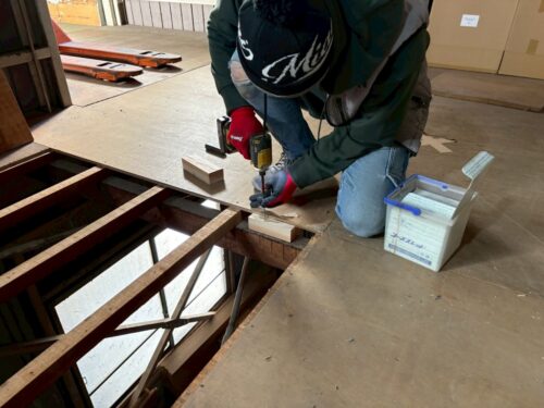 既存のコンパネ撤去・下地補強・コンパネ張替を行った後に
