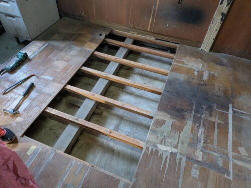 日々重いものを運搬する中で床のコンパネが沈んでしまったと、、
