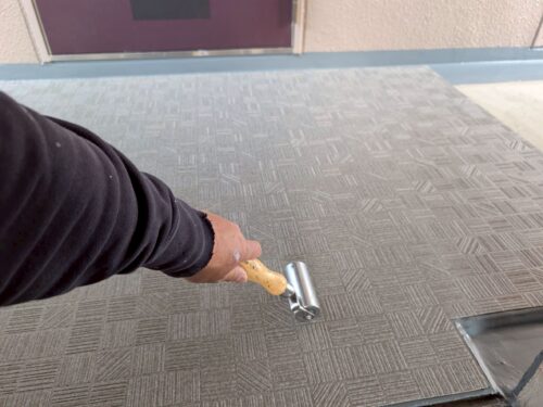 シートの接着不良が無いよう、ローラーを使って入念に転圧していきます